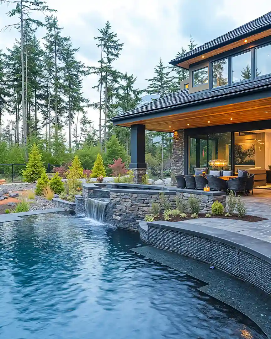 - Natural Materials: Stone coping, pebble finishes, and wood decking that blend seamlessly with landscapes.